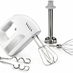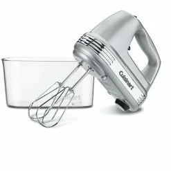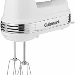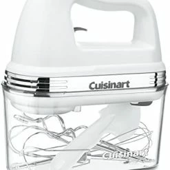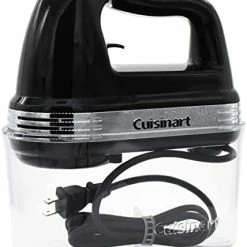 I looked at all the other brands and ended up with this model by Cuisinart. This mixer starts off slowly so you don’t end up wearing what you want to mix. Product comes with sturdy, chromed mixing utensils. Very POWERFUL on max speed. Well-crafted, clear storage container that holds everything. I like that the cord can be positioned to the left or to the right, depending if your right or left-handed. I’ve used it numerous times and it’s working beautifully. My wife insists on mixing all the whipped cream now. Have at it sweetheart, … preparing food should be fun and it is, when you have the right tools. Overall, a great addition to anyone’s gourmet kitchen. One last thing, the mixer utensils hold very securely until you pull the ejector trigger. Great design.