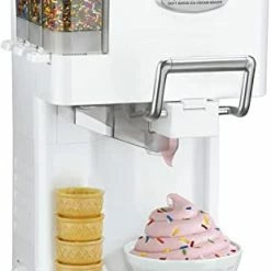 - MIX-IN YOUR FAVORITE INGREDIENTS: With 3 condiment containers you can add your favorite mix-ins into your soft serve ice cream as it’s dispensed – The front condiment container with a curved edge dispenses small mix-ins such as sprinkles. Two rectangular condiment containers dispense larger mix-ins such as mini M&M s or mini chocolate morsels