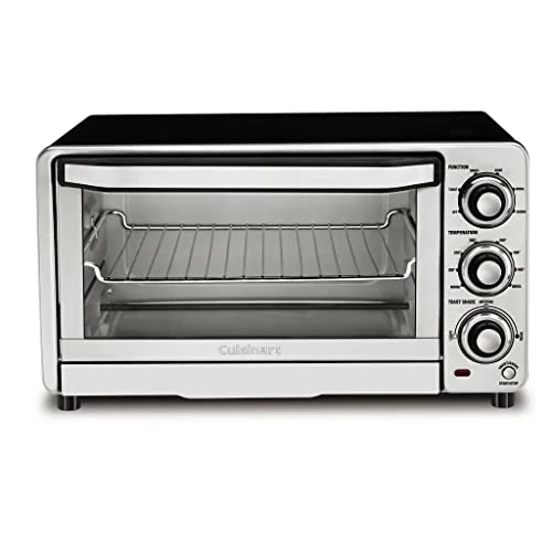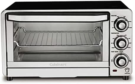 My more expensive, super fancy Krups toaster oven recently kicked the bucket after about 4-5 yrs of service, and it was time to replace it. While my Krups was a good toaster oven (before it died), it took up a lot of space on the counter, it was expensive to buy, and frankly it had a lot of features (convection) and interior space that I just don’t use and don’t think are necessary in a toaster oven. So when I shopped for a replacement, I decided to go downmarket a bit.Problem is, the toaster oven market is bifurcated towards two extremes and IMO neither is ideal. On the low end, are super cheap pieces of junk. On the higher end, are expensive behemoths that take up all your counter space and have a lot of features that most of us will never use. Now I’ll admit, for someone who lives in say a small apartment and doesn’t have a regular oven, the second type may make sense. But I live in a house with a regular kitchen and I have a regular oven and a cooktop, as well as a gas grill and a big green egg. What this means is, I’m not going to be roasting a whole chicken or searing steaks or baking any cakes or cooking thanksgiving dinner in my toaster oven. What I mostly use my toaster oven for is 1) toast! and 2) heating up things like leftover pizza or empanadas or really anything else that will get soggy in the microwave but you don’t want to wait for the regular oven to preheat when alls you want to do is heat up a single item, and 3) odd things like maybe an open faced sammich or something. So really, anything small that you want to heat up quickly yet still have it be crispy. I have a hunch a large percent of toaster oven owners use them pretty much like I do and want a quality product but don’t want a $300 large convection toaster oven taking up all our counter space, but also don’t want to trust the $20 hunk of junk that looks like it will die in 2 weeks and can’t toast evenly.This toaster oven is a good choice because:1) It’s simple – toast, bagel, bake, broil. The analog controls are simple to use, and unlike a digital keypad it “remembers” what your last setting was (for say toast darkness or oven temp), which you are likely to use repeatedly. Some reviews complained the controls are hard to read, and I don’t find this to be a problem although I do have good near-sight vision. The crum tray is easy to remove, clean, and replace.2) It works – nice even toasting. Heats up quickly for reheating items. I was surprised at how light it was out of the box, but it works well so this doesn’t appear to be a problem.3) It’s a fair price – way cheaper than the expensive convection ovens, but not so cheap as to be garbage4) Small footprint – doesn’t take up much counter space yet still big enough for everything I want a toaster oven to do. Honestly if something can’t fit in this thing I have no problem firing up the regular oven.Now, there seem to be 2 basic complaints on this model and I don’t find either to be a problem:1) No timer – who cares? I’m only using it for toast (which does shut off when it reaches desired darkness) and to heat up small stuff that only takes a few minutes, I can hang around and keep an eye on it. Again, this seems like more of a problem for people who want to bake a cake or something and I don’t know why you’d want to use a toaster oven to do that.2) A lot of people complain that the toast comes out too dark – I’m puzzled by these complaints as I find it extremely easy to set the toaster to desired darkness. The medium setting comes out pretty much what I’d expect medium toast to be, and more importantly you have infinite adjustability with the analog controls so it shouldn’t take you much experimenting to figure out how you want it. One person even complained they had this for over a month and couldn’t get toast that wasn’t burned – I’d say this person either got a defective unit, or they are severely challenged when it comes to the operation of small electronics and/or employing the trial and error method.Overall – there should be more toaster ovens in this segment. If you don’t routinely roast whole prime ribs or do hard core baking in your toaster oven, this should suit your needs well.Edit: Well, 3 1/2 years later, one of the coils was coming apart and my girlfriend threw the Cuisinart away because she claims that’s a fire hazard! Replacement is a Kitchenaid unit purchased from Costco (which also doesn’t have a lot of unnecessary bells and whistles, although it’s a bit bigger). The new Kitchenaid definitely does not toast as quickly or evenly as the trusty old Cuisinart! I wish we’d just bought another as it’s replacement. 3 1/2 years isn’t too bad for a toaster oven that was used fairly often and not really taken care of, rarely cleaned etc. I stand by my old 5 star review.