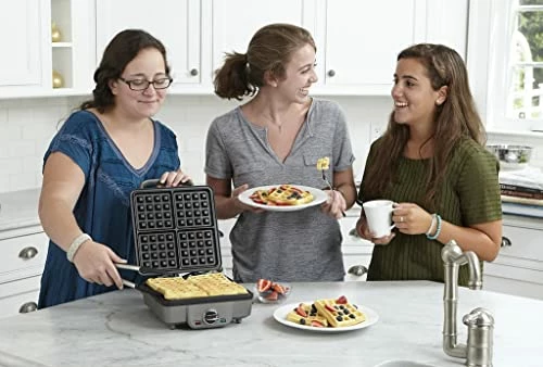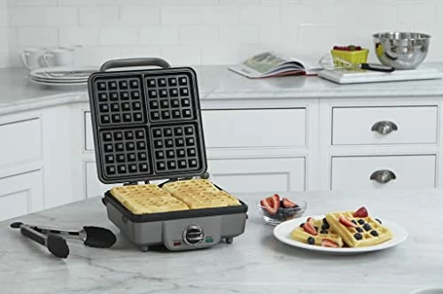 - SUPERIOR FUNCTION: The square classic waffle and pancake maker is professional quality for home use. Bakes 1-large traditional-style belgian waffle and pancakes 1 at a time with four quarters and extra-deep waffle pockets
