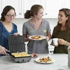 I am super pleased with this waffle making machine. I spent a lot of time looking at a variety of waffle makers. I wanted to get one for my husband as he sometimes wants waffles. I am not usually a fan of waffles, but I found that I do like Belgian style. So, when I began looking for a waffle maker for him, I made sure it could make the thicker Belgian style that I like.There are so many waffle makers out there and the reviews are all over the place. I went from thinking I could get something for less than $20 to taking a peek at the offerings in the hundreds. I looked so hard and so long that I was considering giving up. At some point in my mission, I found this Cuisinart waffle maker. I have always liked this brand, and I was kinda keen on the features such as:Removable platesUse beyond making waffles, additional plates (swap out two waffle plates for a flat and a flat/round for eggs, sausage patties, sandwiches)Belgian waffle style plates with deep crevicesThe product description video helped me to see how it works, which influenced my ultimate buying decision.Basically its a breakfast station! My primary interest was waffle making, so even the lure of added functionality didn’t completely sell me at first. I continued to read all the reviews- again, all mixed like every other out there- and abandoned this for awhile to continue my search.I circled back around to this because, once again, I have been pleased with anything I have by Cuisinart. I liked the overall look of this, and that it appeared to be easy to store. I also decided I liked the additional plates, and I liked that there is no need to do any flipping or rotating of the machine. It cost more ($72) than I originally set out for, but everything about this unit- if it worked- seemed to be worth it. We love “breakfast” anytime, so i knew it would be used not only for waffles but for pancakes, eggs, and sausage patties. In addition, I started looking at recipes that go beyond breakfast foods that use a waffle maker, and this size and style seemed conducive to trying out all sorts of neat recipes. SOLD!Now, as to how it did.1st– how the waffles turn out is greatly determined by the cook. My husband makes perfect Belgium waffles each and every time. ME? they turn out.. ok. I am so glad I wasn’t the only one to test this out, as I would have thought that the machine was at fault. NOPE- me. I swear I do all the things he does, but every single time his turn out better. EVEN SO, mine still look good.It has a few heat settings, just take a look at the manual for additional guidance. I don’t think they take long to make. We made several in short time. Nothing seemed out of the ordinary. Waffles were evenly cooked, and always just turn out well. We use Krusteaz brand Belgian Waffle mix every time- not sure if that makes a difference or not.The plates pop out for easy washing, if need be (I usually just wipe with a damp cloth). I can store the unit in an upright position or resting flat. It doesn’t take up much room in my cupboard, which is great. Compact- just a square. Nothing sticking out, making it weird. If you like appliances on your counter, this is pleasant to look at.Usually when we do waffles, we aren’t doing pancakes. Usually when I do pancakes, I am used to using another style of pan, BUT, this is really nice as it heats up quickly, doesn’t stick, and is just fun to use one unit. The round section is for batter,eggs, etc, then the top flat portion presses down. It is still being used primarily for waffles, but I am very pleased with this waffle maker. Especially when my husband makes waffles.The more we use the more I am pleased with this purchase. 5 stars at this time. If I learn anything new- good or bad- I will be back to update.