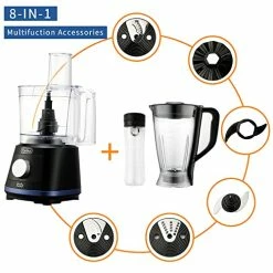 - γAll-in-One 8 Multifunction Processorγ8 multifunctional accessories are included for chopping, slicing, shredding, dough kneading, whisking, blend cup,and cutting. This kitchen food processor is cost-effective enough to work through almost all ingredients quickly and evenly. You can use it to prepare any meal.
