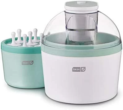 With the DASH everyday ice cream and popsicle maker, making homemade ice cream and popsicles is fun and easy. Whether you like organic, non-dairy sorbet, creamy sherbet, classic vanilla ice cream, or a lemonade popsicle, the everyday ice cream maker with bonus popsicle maker is the perfect 2-in-1 frozen treat helper. Just freeze the bowl overnight, add your ingredients and churn for up to 4 Cups of delicious homemade ice cream. With the ingredient spout, you can add ingredients as you go, from fresh fruit to classic chocolate chips. The 1 quart, double-walled insulated freezer bowl makes party-perfect ice cream and can be stored in your freezer for indulgent treats anytime.