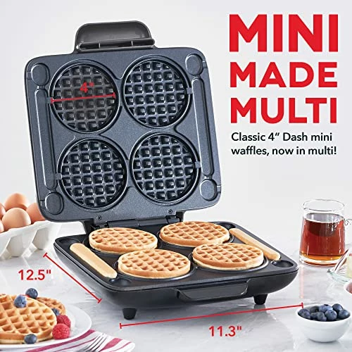 - MORE THE MERRIER: Your favorite 4β DASH mini waffles, now for the whole family. We listened when one waffle was not enough, now you can make up to four of your favorite waffles in a fraction of the time with the DASH Multi Mini Waffle Maker.