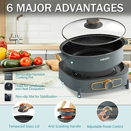 - 4L Large Capacity – The Dezin electric hot pot has a large, 3.7 inch depth capacity that holds up to 4 liters of liquid, and the 11.6-inch diameter provides a wide enough opening for multiple diners.