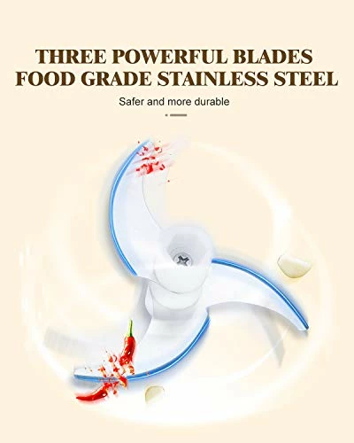 - ใA Electric Chopper with Powerful Motorใ~ As a compact and lightweight electric chopper, DmofwHi electric mini chopper fitted with a 60-watt motor designed to drive 3 reinforced blades that provide better performance for reliable results. DmofwHi mini grinder helps you complete the quick small jobs, like chopping garlic, ginger, peppers, carrots, vegetables, onions, and more.