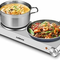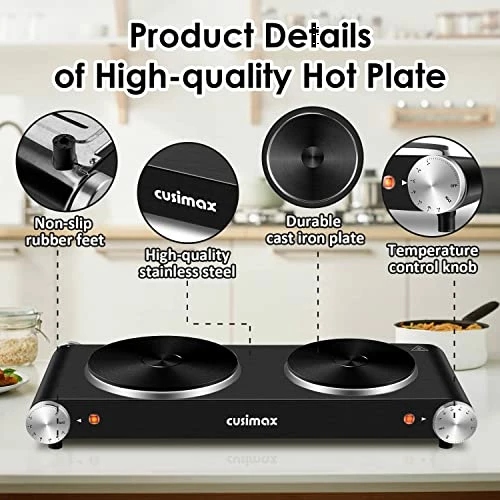 - [✔ MULTIPURPOSE & PORTABLE] – CUSIMAX Hot Plate is ideal for office use, camping, party, RV, student dormitory, travel or as an extra cooking utensil in your kitchen. Because of its small and light size, you can easily use it in a narrow space or anywhere.