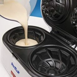 - MULTIPLE WAFFLE BOWLS β The innovative design contains dual waffle makers allowing for cooking of two waffles at the same time. The contemporary double cups design helps in baking more and subsequently serving better. The product also includes five delicious and delightful recipes so that you can get going with your waffle maker without any delays.