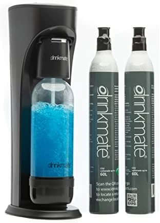 - POWERED BY FOOD GRADE CO2 GAS: All brands of standard 60L CO2 threaded cartridges in North America work with Drinkmate (including SodaStream blue label and Soda Sense). Exchange empty cylinders with Drinkmate’s convenient online exchange program.