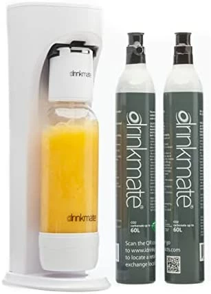 - INCLUDES: Drinkmate sparkling beverage maker, One BPA-Free Carbonating Quick-Connect Bottle with volume measurement lines, Two CO2 Cylinders, and Fizz Infuser.