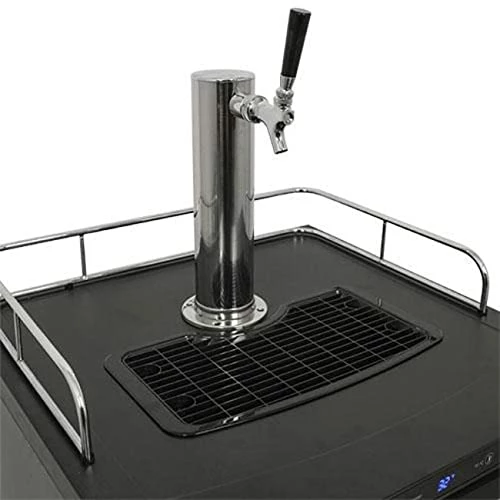 - Deep chill mode; Dispensing components included; Guard rail, drip tray, & casters included; Dimensions (fridge only without casters or tower) 33 1/2″ H x 23 5/8″ W x 23 3/8″ D
