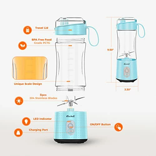 - Eco-friendly: The BPA-free juicer smoothie blender is made of food-grade non-toxic and eco-friendly PCTG material, high-quality ABS shell, food-grade 304 stainless steel. A good day starts with healthy and nutritious juice by Elechelf portable blender.