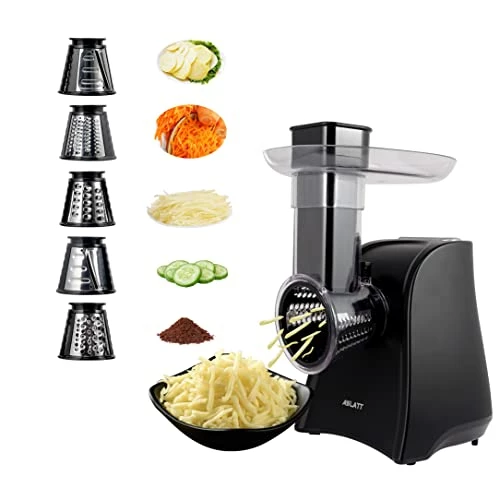 - Free your Hands. With the 150W motor on the electric cheese grater, you can easily shred, slice, grind food, prepare food quickly and shorten the preparation time. Say goodbye to the waiting and enjoy your food as soon as possible with the help of the cheese grater electric.