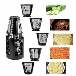It is difficult for me to grate foods on a box grater, so several years ago I purchased a drum grater. It worked so well for me that I decided to upgrade to this electric one. I am so happy I did.! This Thanksgiving we used it several times, I grated: cheese, carrots, and brussel sprouts. Sliced onions and cucumbers. Quick wash in sink between foods and a final wash in the dishwasher cleaned everything. Saves me money by purchasing cheese in bricks and grating it on the drum grater, tastes better too. So far I am very happy with this product!