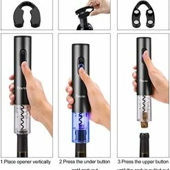 - Professional wine opener set – The exquisite set includes 1 electric wine bottle opener, 1 foil cutter, 1 wine aerator pourer and 1 vacuum wine stopper (It can pump out the air in the bottle and keep the wine fresh for several weeks). This set gives you everything you need to enjoy wine!