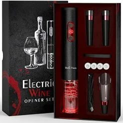 After breaking my Manual bottle opener off in a ” Not So Cheap” bottle of wine, I decided it’s time for an upgrade. This is a really nice set at a GREAT PRICE. The cutter easily removed the foil. The opener removed the cork easily. I love that it’s rechargeable. The aerator is nice as well. There was noticeable taste improvement in wine I’ve had several times before this (without an aerator). I love the wine saver tops. You can extract the excess air from the bottle. Normally my sparkling wine goes flat after a few hours in the fridge, but with this wine saver, 6 hrs later it was still as bubbly as when I opened it. The whole set is presented nicely in a nice box. This would make a great gift.