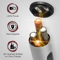 - Open bottles effortlessly. Battery-operated corkscrew opens a wine bottle in 7 seconds. Up to 80 bottles can be opened in one full charge by this must-have kitchen gadget.