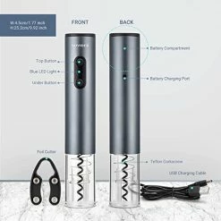 - γSleek Design & Portableγ Metal silver wine opener not only achieve an elegant looks and fit all traditional wine bottles. Our wine openers features the smooth surface with good hand feeling. There is blue led indicator light when the cork being drawn up from the bottle. Small size will be more convenient to take it out and save space.