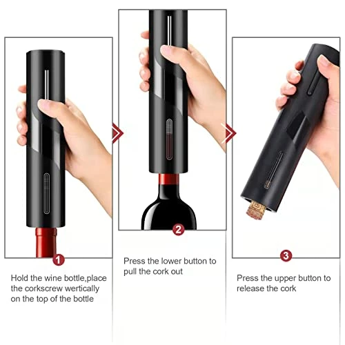 - β€γSimple Operation And Quick Openingγ After fully charged, 40-50 bottles can be opened continuously. Rechargeable wine corkscrew by pressing the “down” and “up” buttons, you can take out the cork in 6-8 seconds. Be sure to fully charge the battery before using it for the first time.