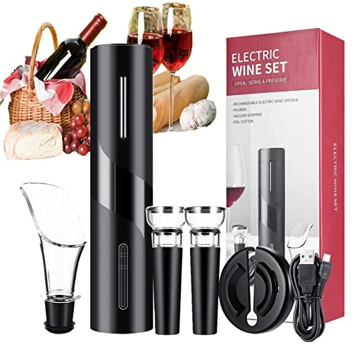 - β€γWidely UsedγWine bottle opener and stopper set is suitable for celebrating various special occasions, anniversaries, festivals, parties, gatherings, birthdays, vacations and other entertainment activities.The electric rechargeable wine bottle opener can help you open most wines easily.