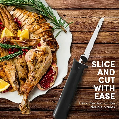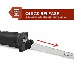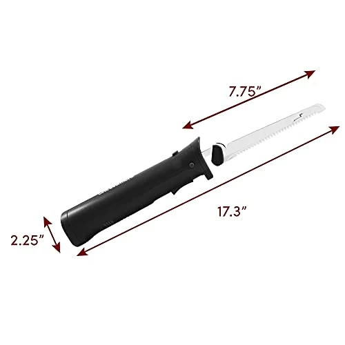 - FOUR STAINLESS STEEL BLADES – This electric knife features two sets of reciprocating, serrated blades with safety finger guards.