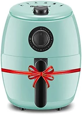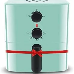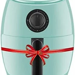 My large 12qt air fryer broke down after 3 years of use and being able to reclaim counter-top space was nice, but I missed making crispy fries and warming different foods in an air fryer. So I bought this one and I am so happy I did! It is such a tiny thing it looks like a toy! The turquoise color is nice and it is so quiet! Compared to my larger air fryer that I could hear 2 rooms away, this tiny air fryer is whisper quiet! My only gripe are the controller dials, they feel flimsy but for right now, everything works great – oh and the timer just keeps going even if I take the food out and lower the temp. I am afraid to force the dial to 0 minutes because it feels a bit flimsy but I just lower the temperature and unplug it, letting the timer finish its thing. 🙂