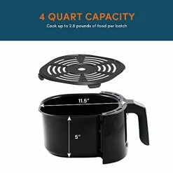 - LARGE CAPACITY: The 4 quart PFOA/PTFE free non-stick basket holds up to 3.2lb of food, perfect for family-sized meals. Cook healthier, faster and more safely than deep frying in oil, eliminating splatter, fatty oils and reducing electricity use.