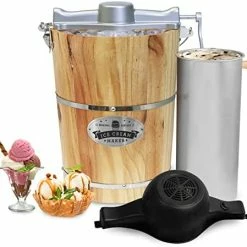 - ETL APPROVED 50-watt/120V for home kitchen use. Includes Electric Motor, Wooden bucket with handle, Stabilizing Ring, Freezing canister with indent, canister lid and cap, stirrer, dasher paddle and bonus die-cast hand crank.