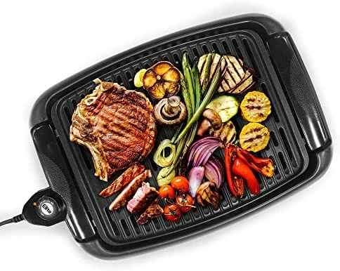 - 1-YEAR WARRANTY โ Designed by BBQ lovers for BBQ lovers, this ergonomic and sturdy indoor grill comes with an EXCLUSIVE 1-YEAR WARRANTY. Included removable parts: Grill base, drip tray, extra large non-stick grill plate, tempered glass lid, thermostat control knob, instruction manual with recipe guide.