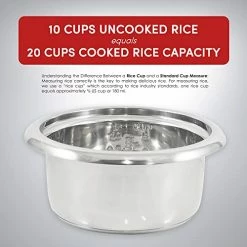 - LARGE CAPACITY cooks up to 10 cups of cooked rice for the entire family and more. This rice cooker holds up to 5 cups of raw rice and 10 cups of cooked rice – enough for multiple servings.