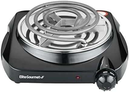 Who doesn’t like the controlable heat of a Gas Stove? Changes instantly and is continuously variable from Low to High. Vietnamese Restaurants invoke huge gas flames, 80,000 BTU’s surrounding the sides of a wok to stir fry a meal put together in one or two minutes. Modern Electric portable cooking appliances don’t work that way. Temperature is controlled by turning the heat on and off for a duration controlled by the temperature knob. Unlike many electric cookers that have preset temperature settings – 1 – 2 – 3 – 4, this little gem’s temp is continuously variable, but still regulates heat via the On – Off method. I was skeptical at first. infra red hot plates turn the heat on and off very quickly. Imagine turning the gas on medium for twenty seconds, then off for 15 seconds. The old-style concentric ring of glowing orange coils worked very well, but I think safety concerns for a portable device that can cause a fire or serious harm to a curious child have taken precedence over old style designs. My main four-burner is an Induction Stove. Flameless. Skeptical, I conducted an experiment. I have a Ceramic Slow-Cooker type Bowl/Pot. Relatively heavy, about 5/16 thick with a glass lid. The Base of this pot just fits the ring of the Elite Hot plate with about 1/16 of an inch to spare. I filled it with 5 1/2 quarts of room temperature water to within an inch of the rim and turned on the heat to MAX; that equates to number 6 on the temperature control knob. Keep in mind the overall weight and thickness of the pot, designed as a slow-cooker. Not like regulation aluminum or stainless steel. Also, there’s a lag in heating the cast iron plate of the burner and cooling it down. It took about two hours to heat the water to a raging, furious boil that was splashing over the edge onto the counter top despite the glass lid. The pot is shaped like a flower pot so no water got onto the burner plate. I turned the heat down to 4 1/2 and slowly, the water settled into a nice steady boil, perfect for slow cooking had there been any food in the pot. There was a barely imperceptible surge as the heat turned on and off, hardly even noticeable, that has no practical effect on cooking. The thick cast iron plate acts as a heat sink that disperses the heat evenly when the plate is off. More so the large thick pot full of over a gallon of water retains a lot of heat. The ultimate test, I think. I suppose that for cooking Bacon and Eggs the Elite would work well. I bought it solely for use as a slow cooker since the heating bin for my big pot gave up the ghost with not a whole lot of use. This will do for a replacement. I have a vintage 50’s glow orange coil type hot plate that also works to heat this pot. In direct contact with 1100 watts of glowing coils, it heats 5 1/2 quarts in less than half the time of the Elite. I made a 20 amp 110 VAC on/off set-able timer – e.g. 8 hours 30 minutes – out of three dollars worth of parts to be used as an in-line timer. For unattended use – just set it and forget it – I’d prefer to use this Elite hot plate rather that the old glowing coil set up. Cooking time not a problem with a Slow Cooker. It can cook while asleep, or at work; on the back patio – cut the upper two-thirds off a 55 gallon drum and set it inside against the wind… or not. Crude, but effective. Overall, I agree with other reviewers who give it a good rating. I’ve tried different products of this type that I returned for one reason or another. Used as a portable Fifth Burner, it works well enough to be of good use. For me, it’s a keeper.