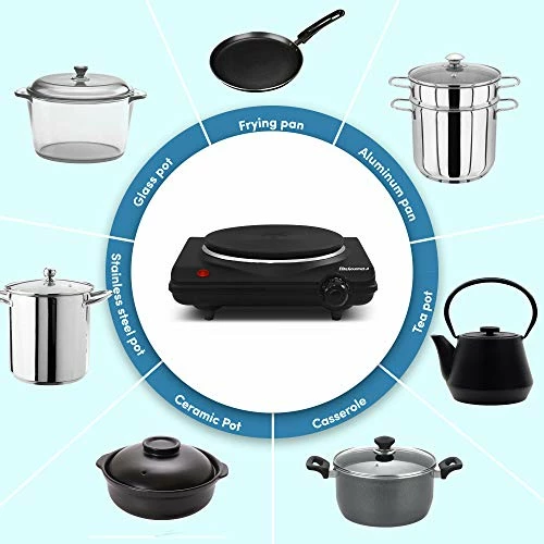 - EFFICIENT POWER: With a wattage of 1000 Watts, the hot plate and individual temperature controls provides sufficient heat for all your cooking needs.