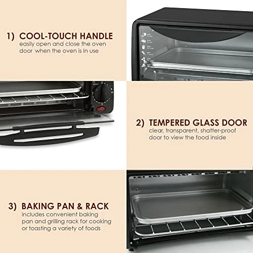 - ADJUSTABLE TIMER: The 15 min timer is perfect for toasting and warming up food for a quick and easy snack or breakfast.