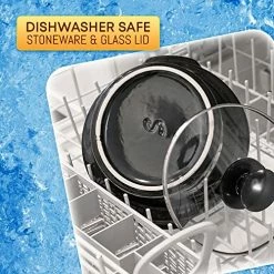 - FAST, EASY CLEAN-UP with our dishwasher-safe clear tempered glass lid and removable oval stoneware pot. The stainless steel exterior heating base can be wiped clean with a damp cloth to maintain its pristine appearance.
