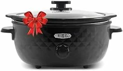 LOVE the RED color – matches my coffee pot 🙂 It has a true crock in it. This cooks things evenly. I like to throw a couple of turkey thighs in this little guy – they are juicy and wonderful by end of day. I like the Warm selection – perfect for hot dips. Because its oval shaped and the glass lid is bound by metal against ceramic crock – well its not as tight a fit but it didnt have a detrimental effect on my dinners (yet).