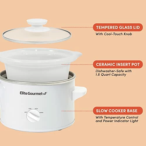 - PERSONAL 1.5 QUART slow cooker makes cooking fork-tender roasts and poultry a breeze. Cool-touch handles and knob protect hands and allow you to safely transport your slow cooker.