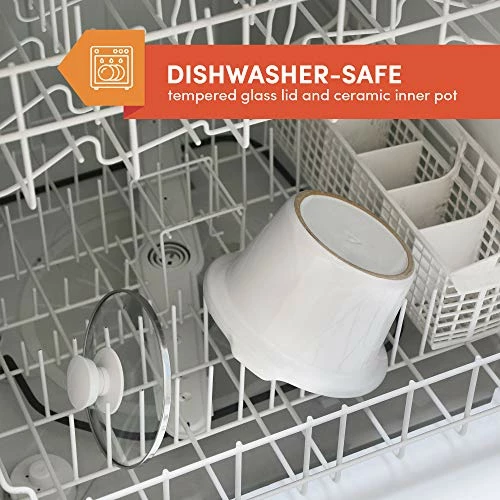- FAST, EASY CLEAN-UP with our dishwasher-safe clear tempered glass lid and removable oval stoneware pot. The exterior heating base can be wiped clean with a damp cloth to maintain its pristine appearance.