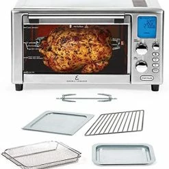 - Stainless-Steel Construction : A sleek, state-of-the art appliance to complement your kitchen and surrounding accessories, this all-in-one air fryer, rotisserie, and dehydrator oven provides long-lasting versatility and an XL 930 cubic inch capacity. Includes a crisper tray, rotisserie spit, pizza rack, baking pan, drip tray, and cook book with recipes written by Emeril himself!