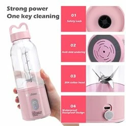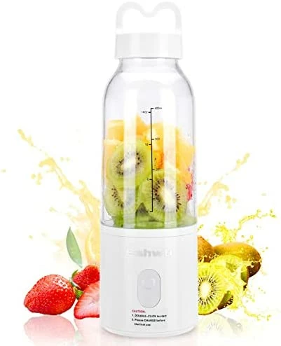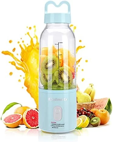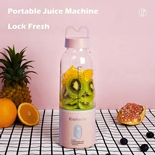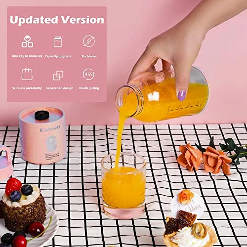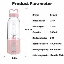 - Portable and Easy to Use: The Eshwb handheld blender is easy to operate and has an ergonomic, portable design, fitting nicely in your backpack, luggage or purse! Intelligent design with the blades positioned in the bottle will make sure to keep the entire operation perfectly safe! Note: This portable juicer is red light when charging, blue light when fully charged Can not be used when charging.