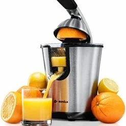 - STAINLESS STEEL CONSTRUCTION – This Electric Juicer for Oranges and Lemons boasts premium build and construction that offers both quality and aesthetics – perfect for any kitchen style. Despite the larger design, it will still look great on your counter with its modern and updated finishing.