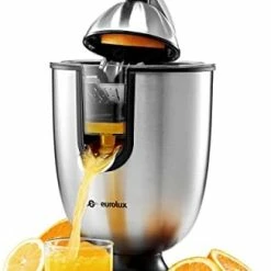 - POWERFUL JUICING TECHNOLOGY – Eurolux ELCJ-1700 Electric Citrus Juicer uses a new and improved motor gear that offers a quiet yet powerful juice extraction at only 120 Watts. It provides the same exact power as with 160W juicers but is made more energy-efficient and expected to last longer.