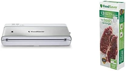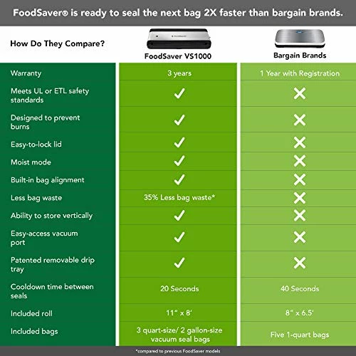 - MORE FEATURES: Built-in bag alignment drip tray ensures correct bag placement every time and is removable for easy cleanup, connect to a FoodSaver Hand Held Sealer (sold separately) to sous vide or preserve food stored in the fridge and pantry, compatible with all other FoodSaver bags, rolls, and accessories