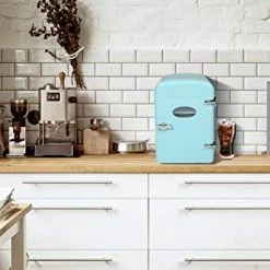 - RETRO BLUE COLOR IS TIMELESS AND RARE!! – Cools 27-36 degrees (Fahrenheit) below ambient room temperature. The Locking latch keeps items secure