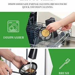 - [Easy to Clean] – Equip a special brush to make cleaning easier and faster. All removable parts of the juicer are dishwasher (Top Shelf Only) safe and can be rinsed directly with water. While you are still enjoying the juice, parts has been cleaned well.