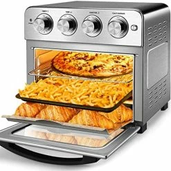 - 【Healthy,Fast,Powerful】ETL listed for safety, 1700W strong Power makes super Efficient to cook food in the Healthiest way by cutting over 85% of fats. Equipped with a large glass viewing window and inner oven light, make it easy to monitor cooking progress.Brushed Stainless Steel exterior enhances any kitchen decorate.