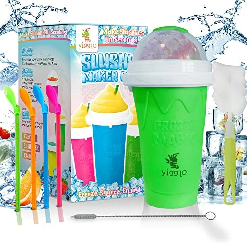 - Slushy Cup Fun and Refreshing Treats: How can you transform any beverage into a creamy delight? With Yigglo’s slushy machines for kids, a super practical and fun accessory that allows you to turn juice, lemonade, or soda into a creamy slushy, milkshake, or smoothie within minutes!