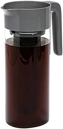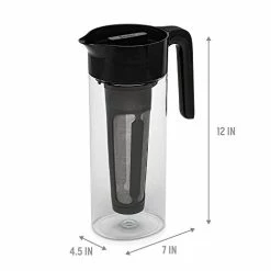 - INNOVATIVE DESIGN – This pitcher is manufactured without BPA and is odor and stain resistant The pitcher was masterfully designed with a perfect pour spout and a leak proof and keep-fresh airtight lid. The specially designed lid seals in freshness for days and provides a smooth drip-free pour, while the fine mesh coffee filter keeps grounds out of your coffee.