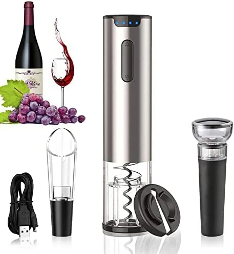 - 【All-in-One Electric Wine Opener Gift Set】: Multifunctional wine opener gift set with foil cutter, USB charging cable. The exquisite packaging shows an elegant and noble temperament, which is the best gift for your family and friends.