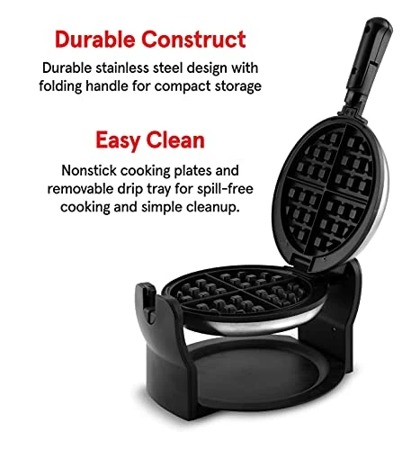 - 180Β° ROTATING PLATES: Plates rotate so your waffles are evenly cooked to your satisfaction.
