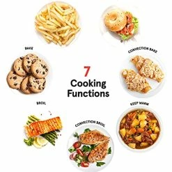 - EASY-SET CONTROLS: this countertop oven boasts 7 COOKING FUNCTIONS: air fryer toaster oven combo, roaster oven dehydrator rotisserie oven and more with this kitchen appliances multi use capability – baking pan, crumb tray and recipe book included